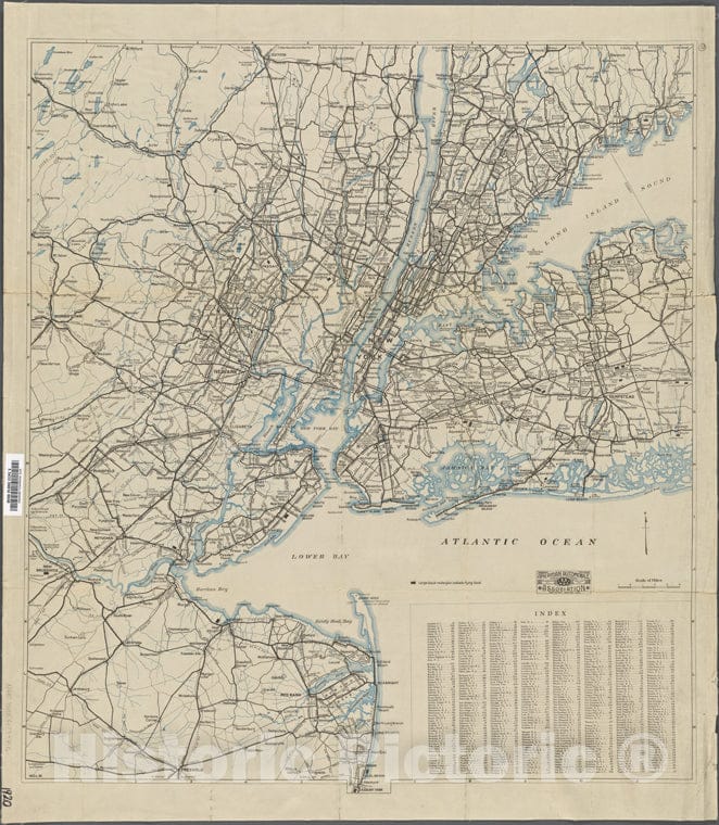 Historic 1920 Map - [Automobile Road Map Of The Metropolitan District.] Of New York City And State - New York City & Vicinity