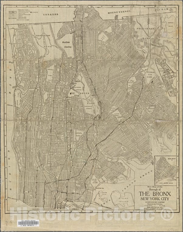 Historic 1920 Map - New Map Of The Borough Of The Bronx.Of New York City And State - Bronx