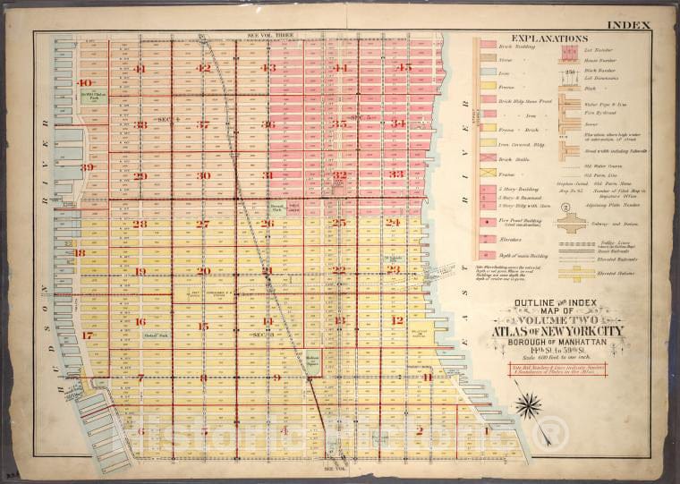 Historic 1920 Map - Outline And Index Map Of Atlas Of New York City, Borough Of Manh