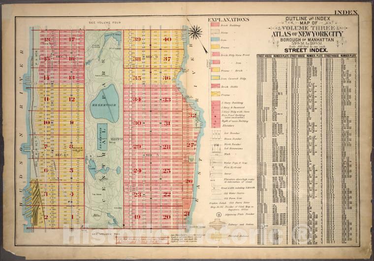 Historic 1921 Map - Outline And Index Map Of Atlas Of New York City, Borough Of Manh