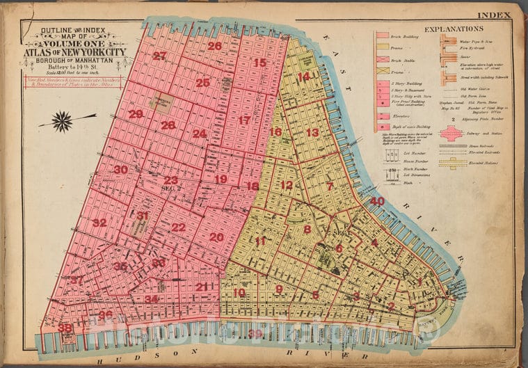 Historic 1921 Map - Outline And Index Map Of Volume One, Atlas Of New York City, Bor