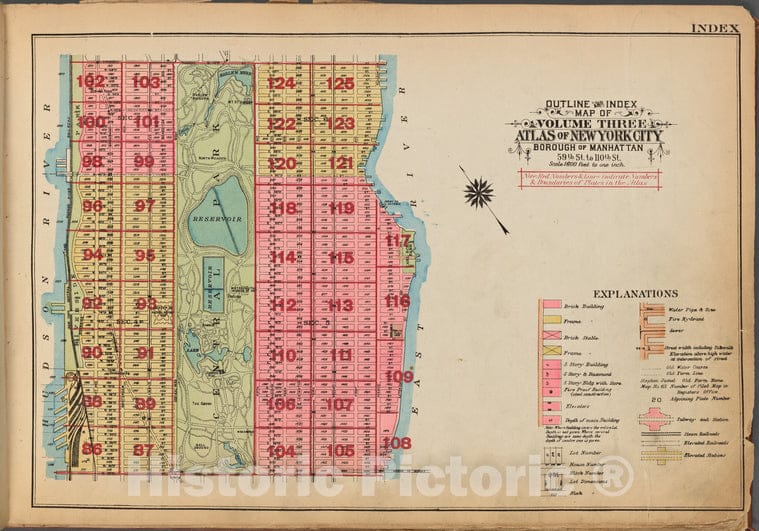 Historic 1921 Map - Outline And Index Map Of Volume Three, Atlas Of New York City, B