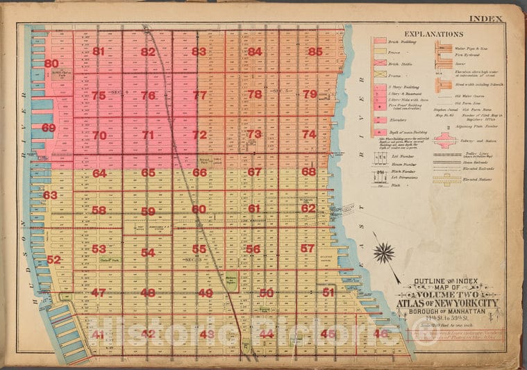 Historic 1921 Map - Outline And Index Map Of Volume Two, Atlas Of New York City, Bor