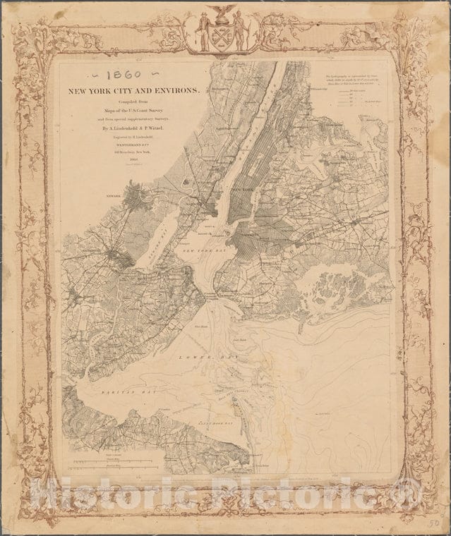 Historic Map - 1860 New York City And Environs Compiled From Maps Of The U. S. Coast Survey And From Special Supplementary Surveys.