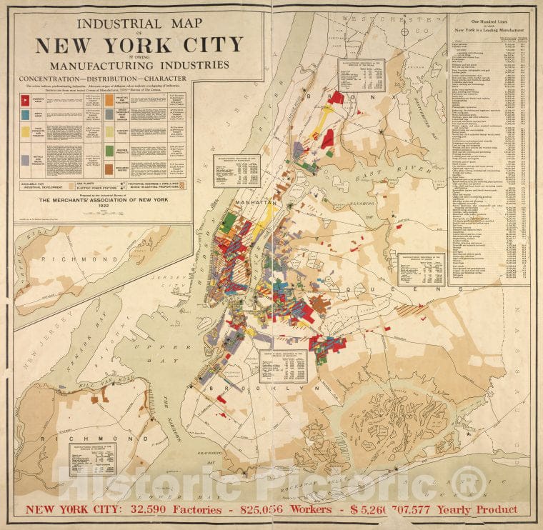 Historic Map - 1922 New York (N.Y.), Industrial Map Of New York City : Showing Manufacturing Industries, Concentration, Distribution, Character