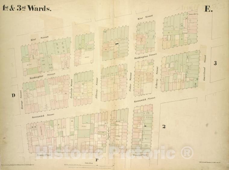 Historic Map - [1St & 3Rd Wards. Plate E: Map Bounded By West Street, Courtland - Atlases Of New York Cityof The City Of New York [1855] - Vintage Wall Art