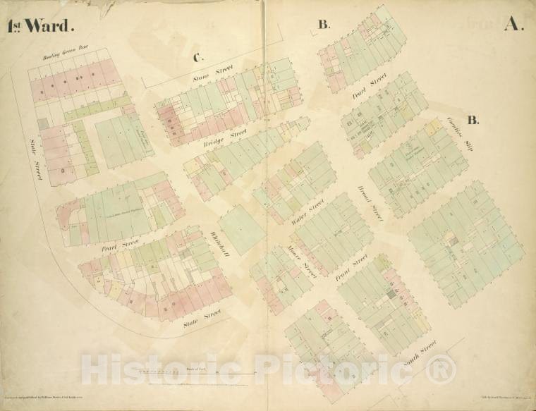 • .Historic Map - [1St Ward. Plate: A Map Bounded By Bowling Green Row, Stone Stre - Atlases Of New York Cityof The City Of New York [1855] - Vintage Wall Art