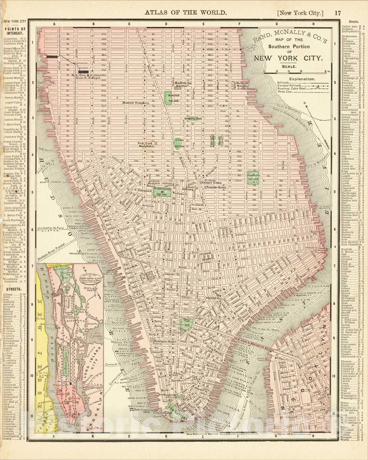 Rand McNally and Co.'s Map of the Southern Portion of New York City, 1895, Rand McNally & Company, v2, Vintage Wall Art :