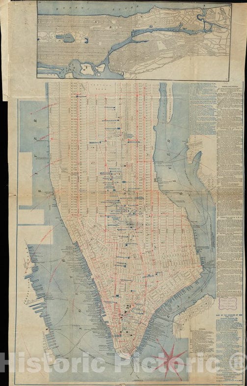 Historical Map, 1880-1889 [New York City, from The Battery to 63rd Street], Vintage Wall Art