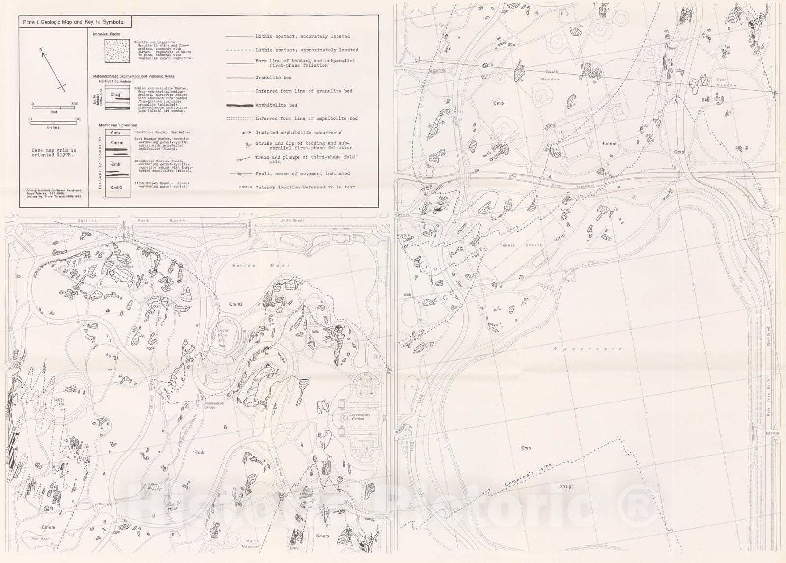 Map : Bedrock geology of Central Park, New York City, 1987 Cartography Wall Art :