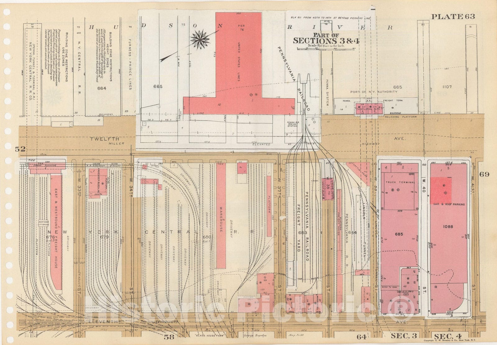 • .Historic Map : Manhattan Land Book 1955 - Updated Through Nov 7th, New York City 1975 Plate 063 , Vintage Wall Art