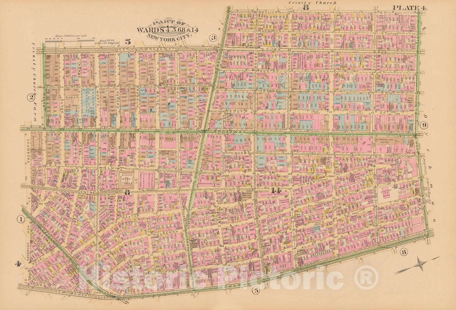Historic Map : Manhattan & New York City 1885 Plate 004 , Robinson's Atlas City of New York , Vintage Wall Art