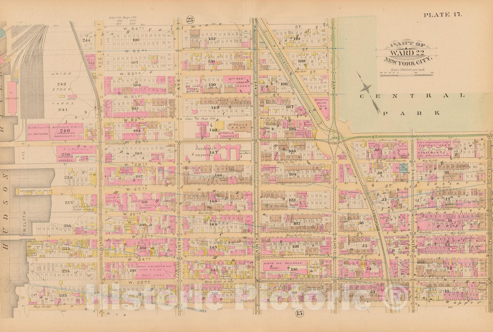 Historic Map : Manhattan & New York City 1885 Plate 017 , Robinson's Atlas City of New York , Vintage Wall Art