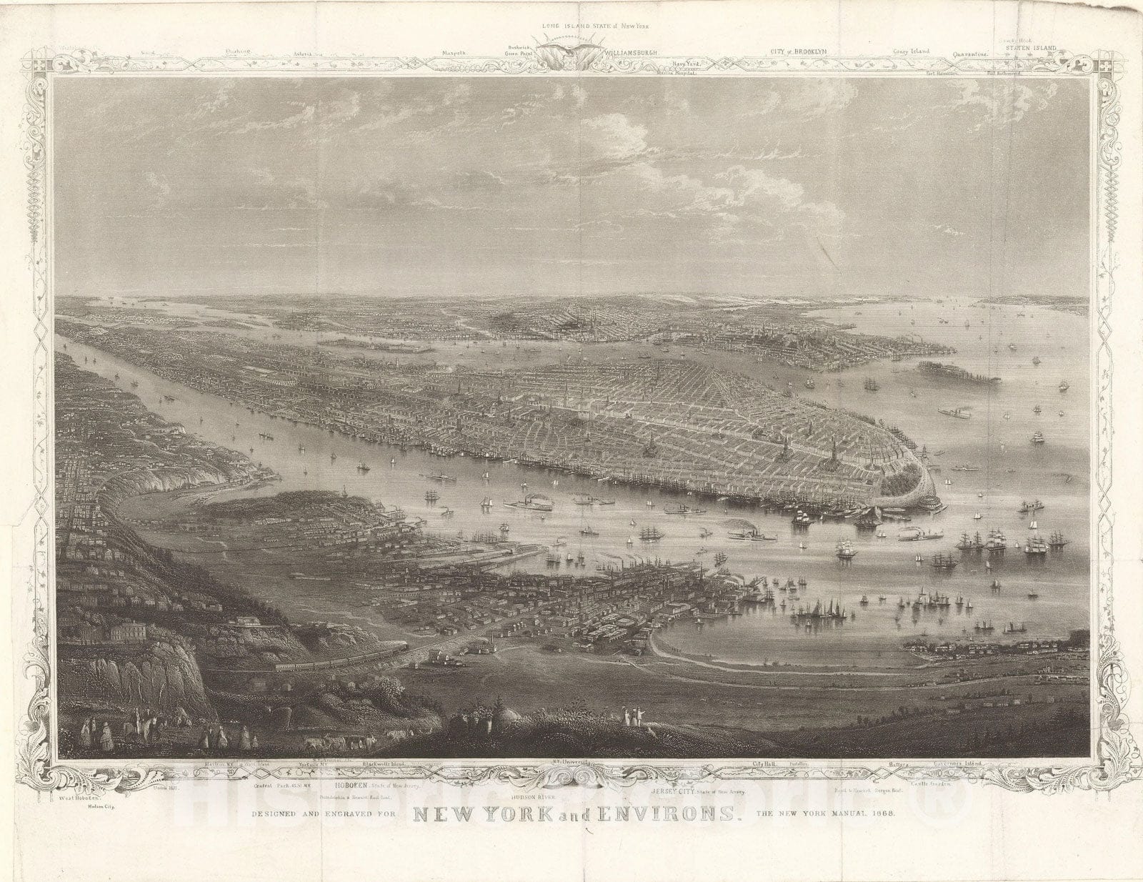 Historic Map : New York City 1868 Bird's Eye View , Vintage Wall Art