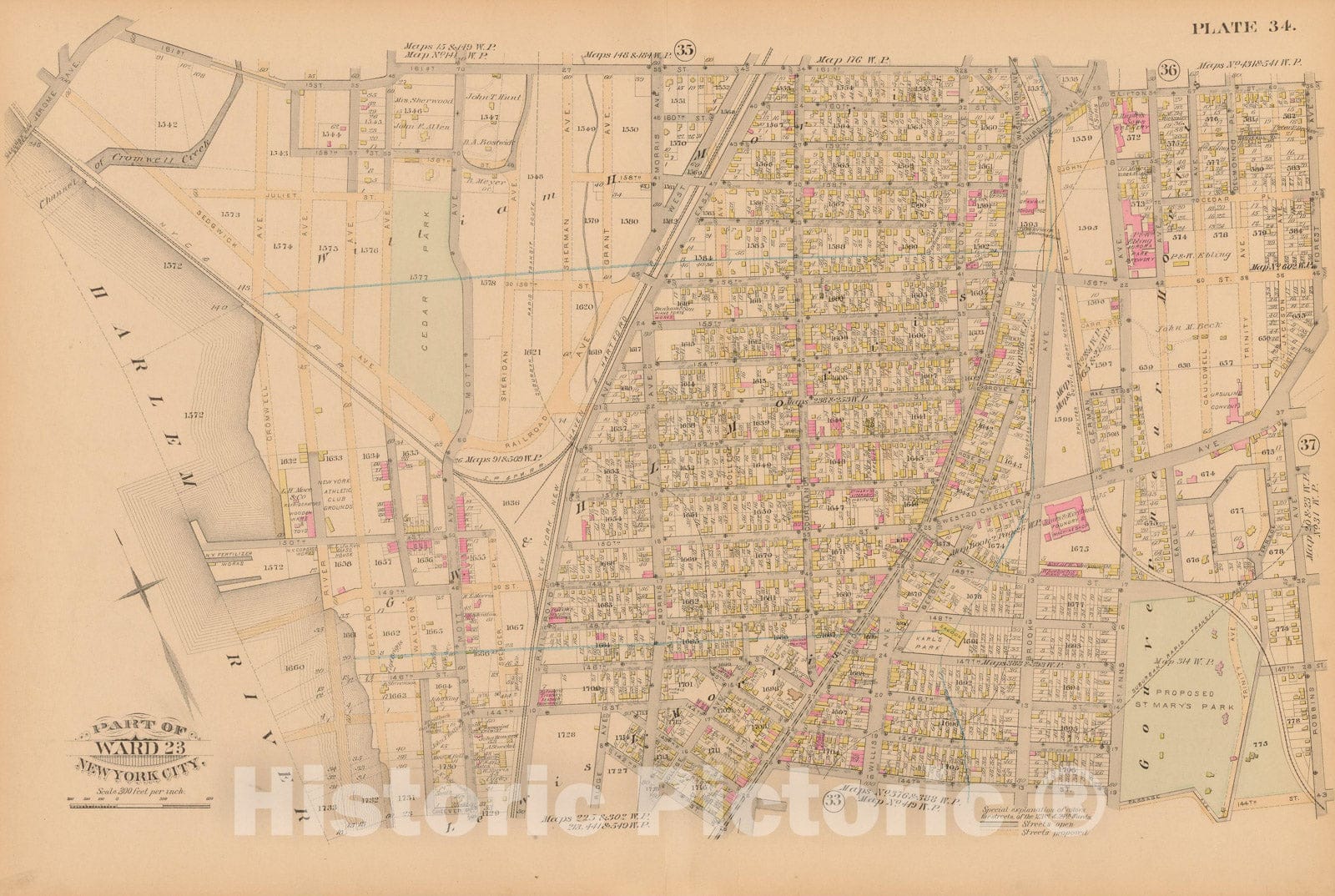 Historic Map : New York City & The Bronx 1885 Plate 034 , Robinson's Atlas City of New York , Vintage Wall Art