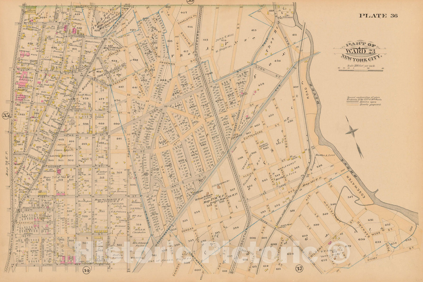 • .Historic Map : New York City & The Bronx 1885 Plate 036 , Robinson's Atlas City of New York , Vintage Wall Art