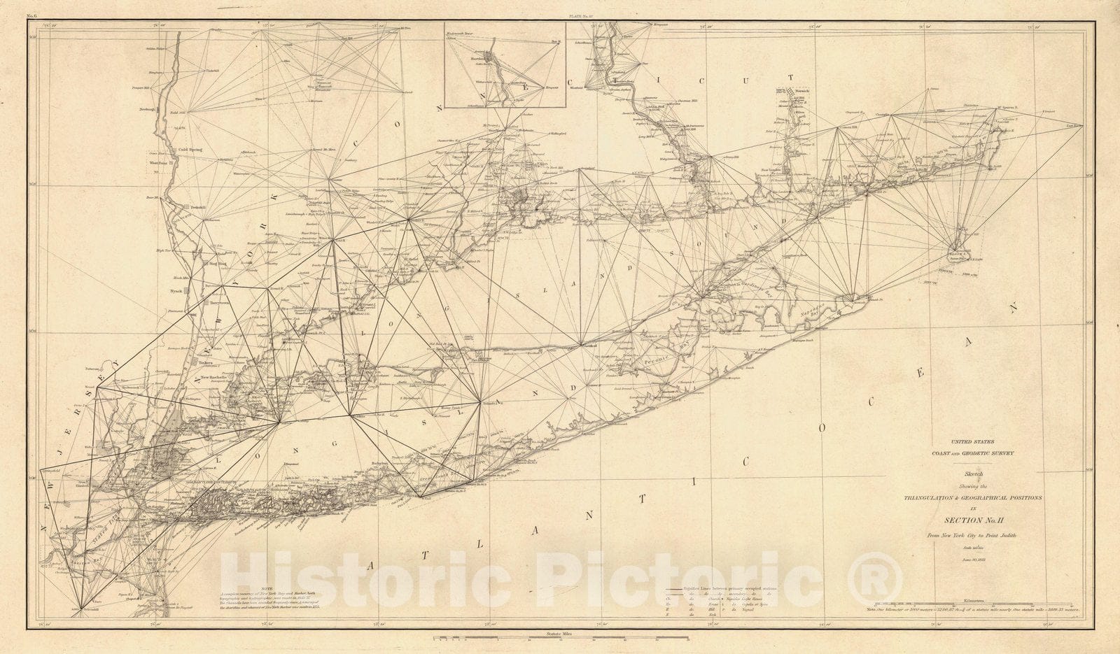 Historic Nautical Map - Triangulation And Geographical Positions From New York City To Point Judith, 1881 NOAA Chart - Vintage Wall Art