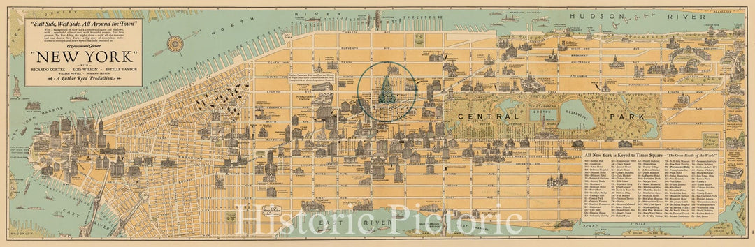 Historic Map - Manhattan/New York City Apartments 'Round-the-Town, 1935, New York Herald Tribune - Vintage Wall Art