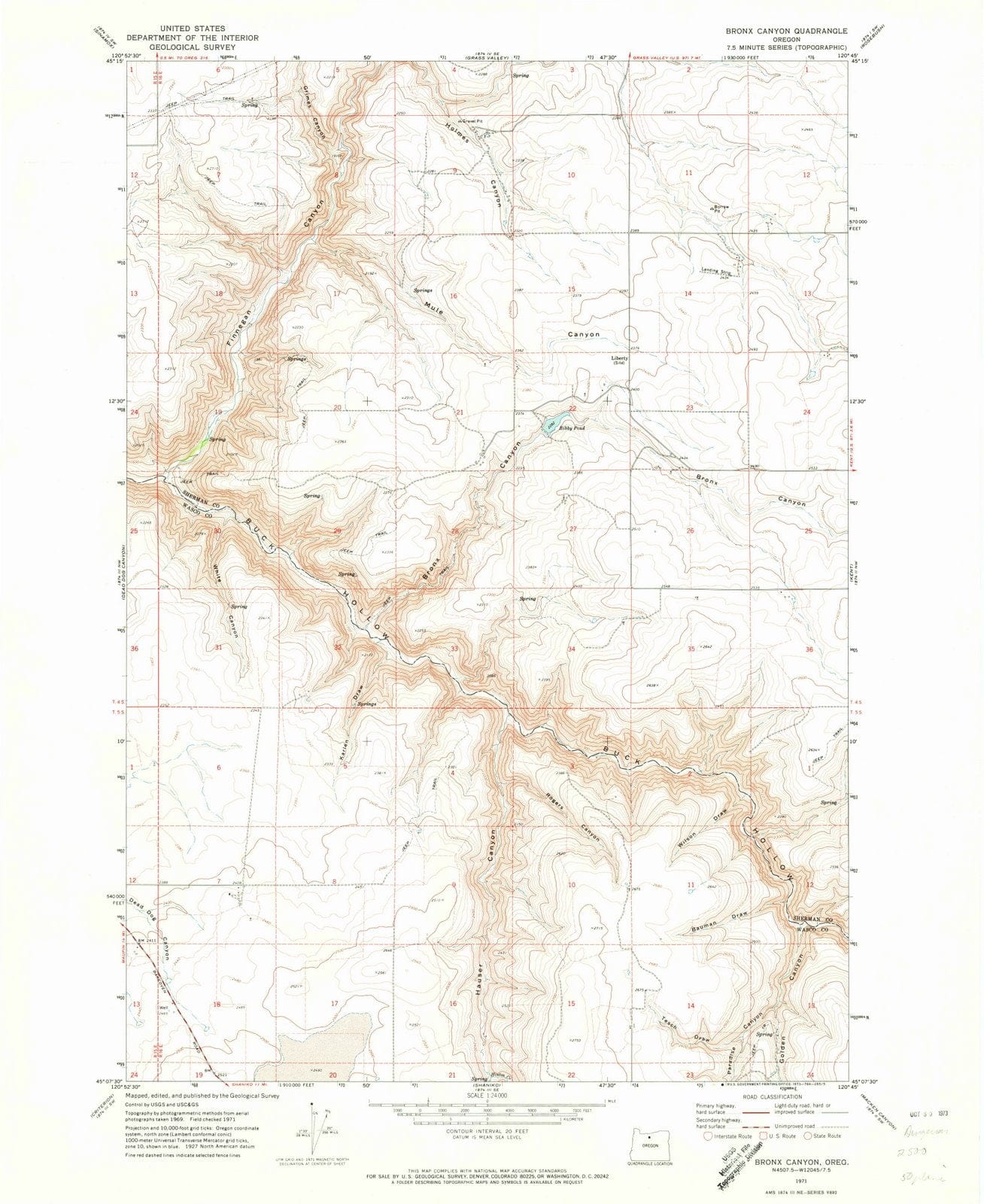 1971 Bronx Canyon, OR - Oregon - USGS Topographic Map
