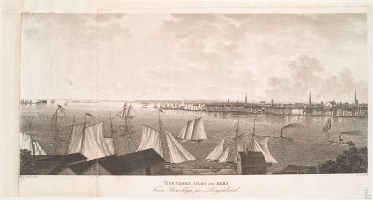 Art Print : 1824, Newyorks hamn Och redd frAn Brooklyn pA Longisland. - Vintage Wall Art