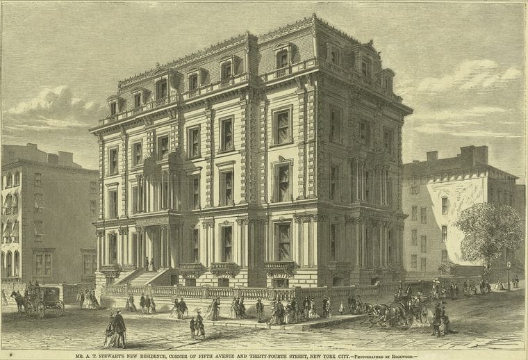 Art Print : 1880, Mr. A.T. Stewart's New Residence, Corner of Fifth Avenue and Thirty-Fourth Street, New York City - Vintage Wall Art