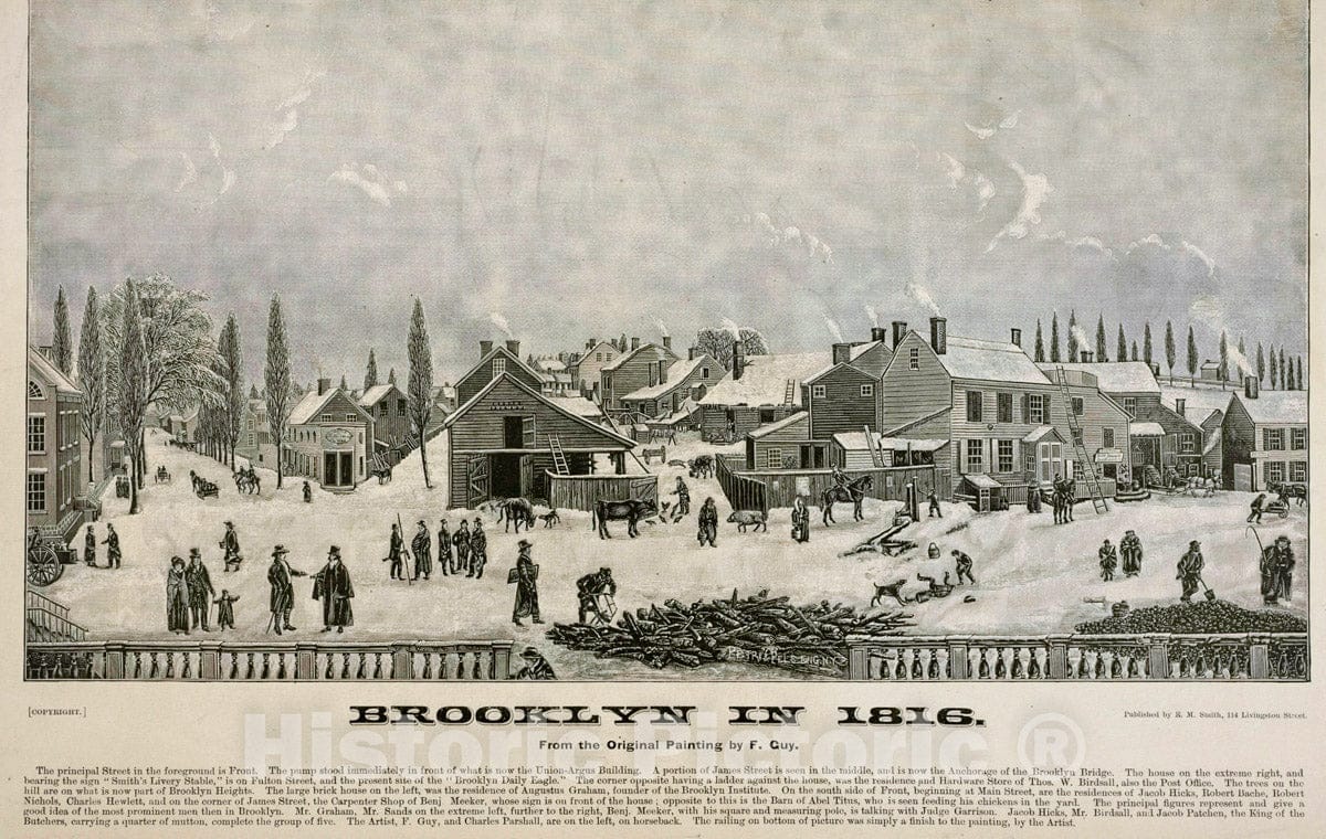 Art Print : Brooklyn in 1816. The Principal Street in The Foreground in Front. [5 More Lines of Description] - Vintage Wall Art