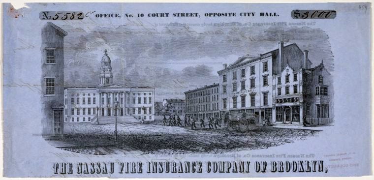 Art Print : Brooklyn City Hall and surroundings. Letterhead of The Nassau Fire Insurance Co. - Vintage Wall Art
