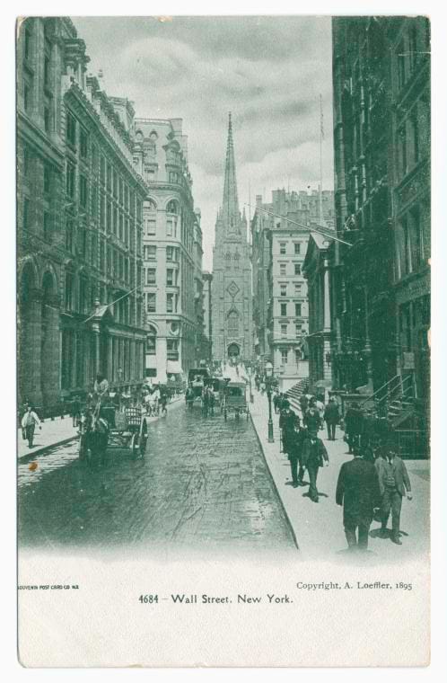 • .Art Print : Wall Street Showing Trinity Church, New York City, 1915 - Vintage Wall Art
