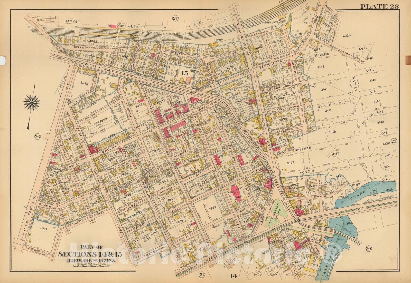 Historic Map : Atlas City of NY, Borough of The Bronx, Annexed District, The Bronx 1913 Plate 028 , Vintage Wall Art