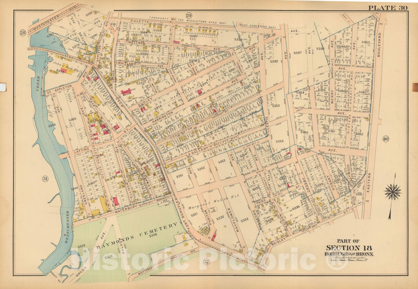 Historic Map : Atlas City of NY, Borough of The Bronx, Annexed District, The Bronx 1913 Plate 030 , Vintage Wall Art