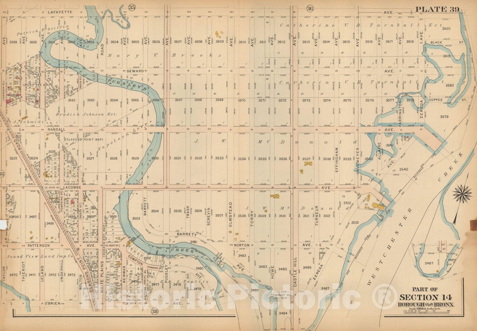 Historic Map : Atlas City of NY, Borough of The Bronx, Annexed District, The Bronx 1913 Plate 039 , Vintage Wall Art