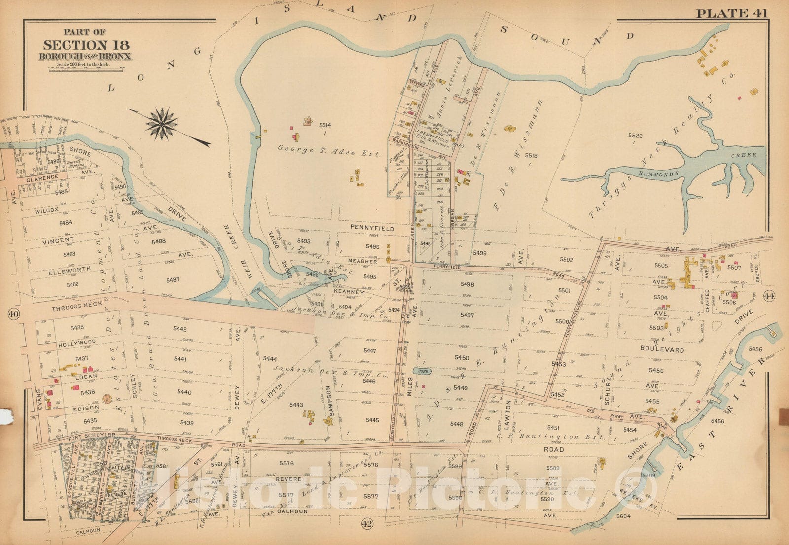 Historic Map : Atlas City of NY, Borough of The Bronx, Annexed District, The Bronx 1913 Plate 041 , Vintage Wall Art