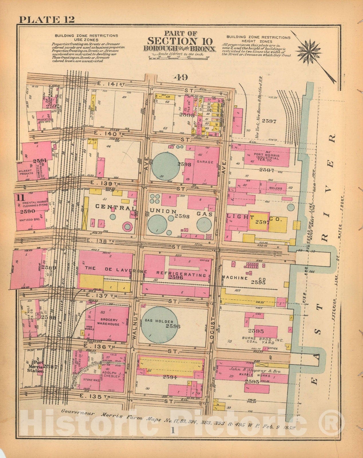 • .Historic Map : Borough of The Bronx, Sections 9-13, The Bronx 1928 Plate 012 , Vintage Wall Art