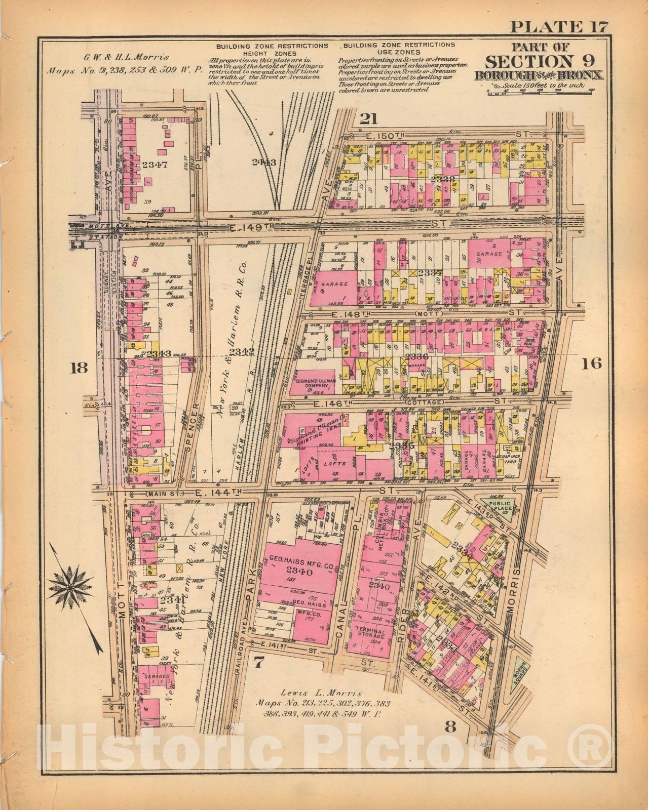 Historic Map : Borough of The Bronx, Sections 9-13, The Bronx 1928 Plate 017 , Vintage Wall Art