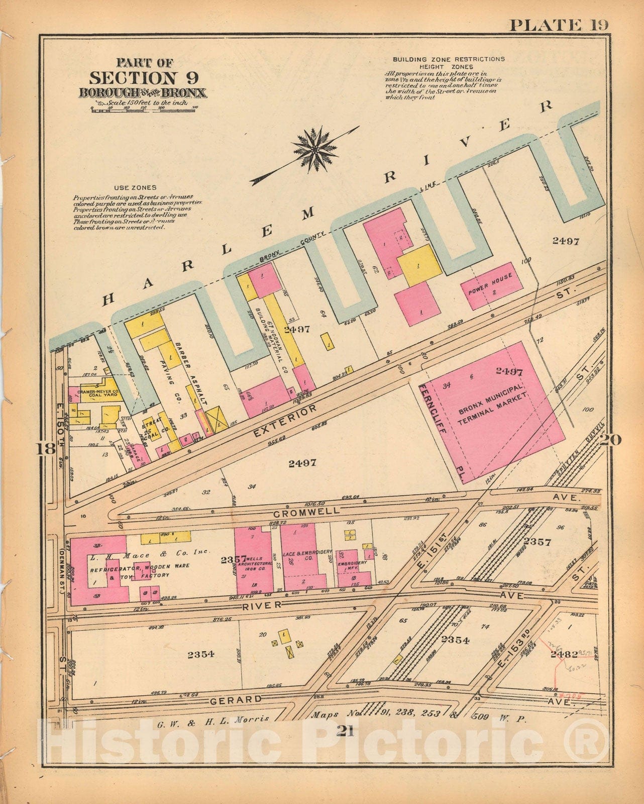 Historic Map : Borough of The Bronx, Sections 9-13, The Bronx 1928 Plate 019 , Vintage Wall Art