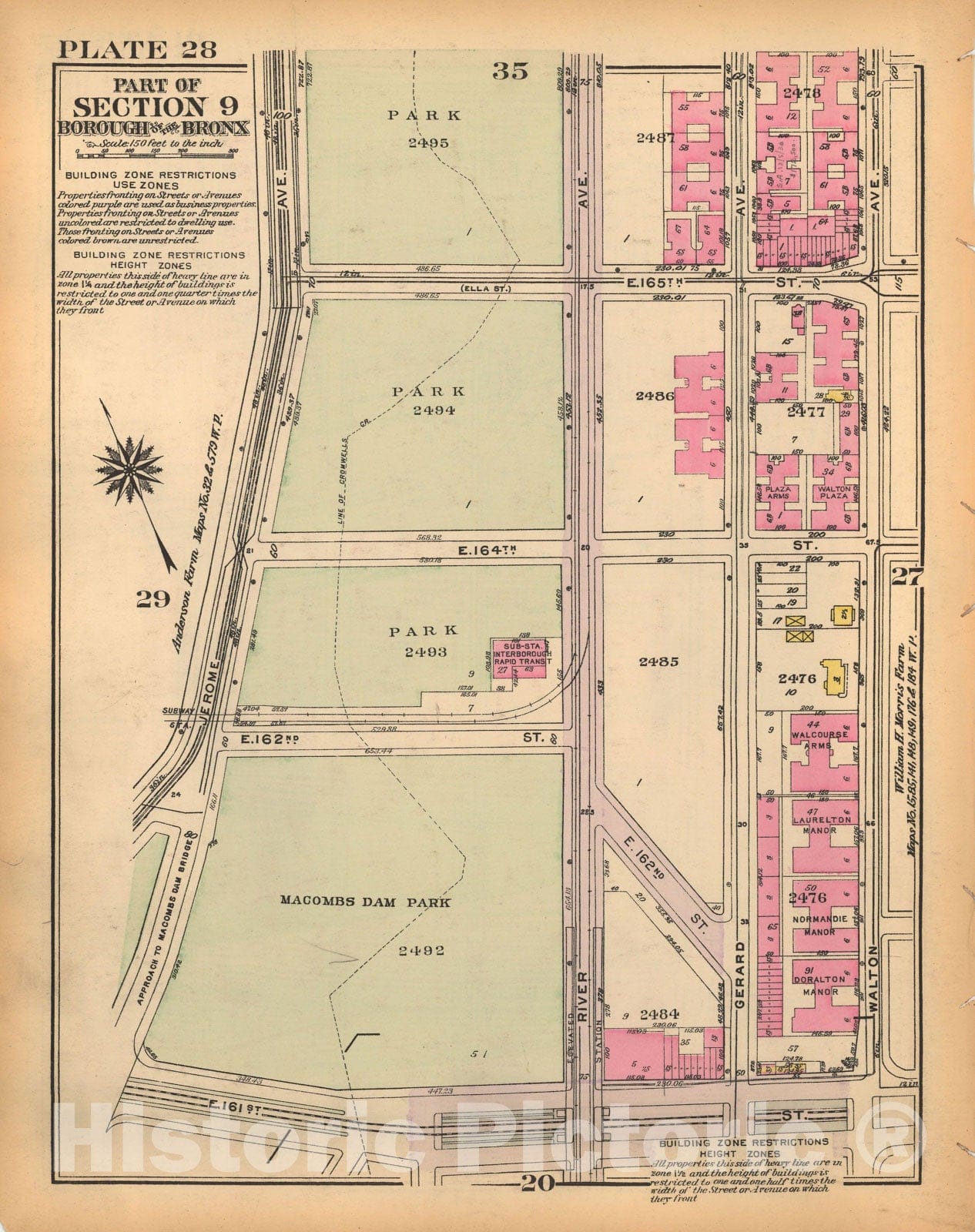 Historic Map : Borough of The Bronx, Sections 9-13, The Bronx 1928 Plate 028 , Vintage Wall Art