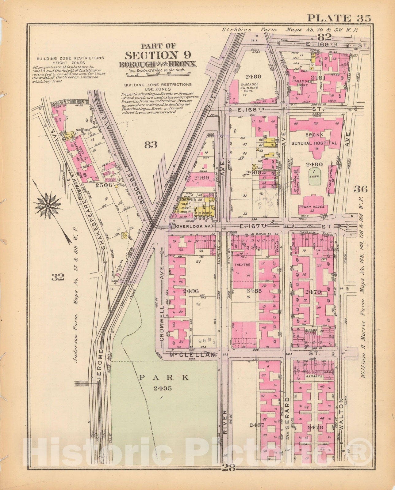 Historic Map : Borough of The Bronx, Sections 9-13, The Bronx 1928 Plate 035 , Vintage Wall Art