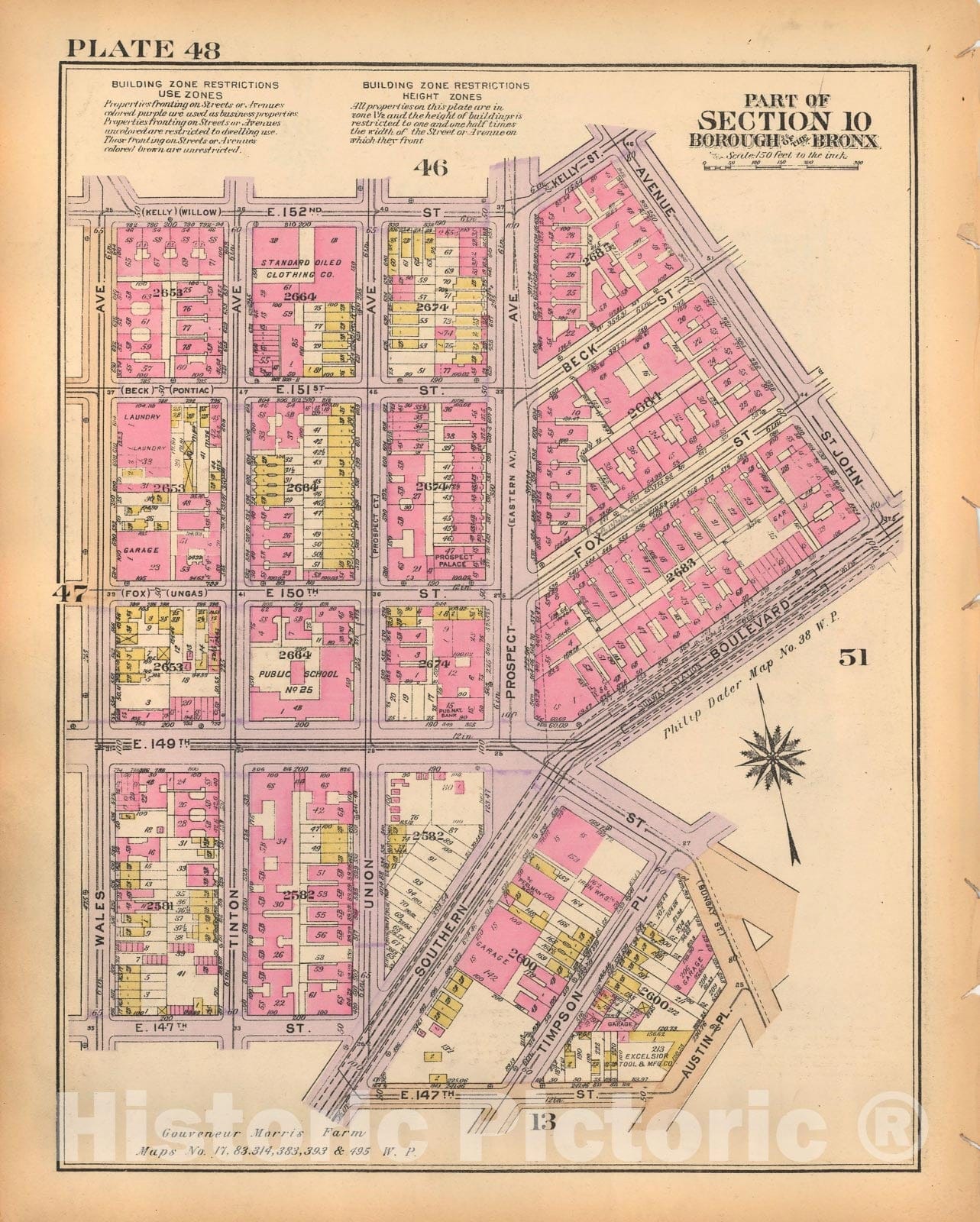 Historic Map : Borough of The Bronx, Sections 9-13, The Bronx 1928 Plate 048 , Vintage Wall Art