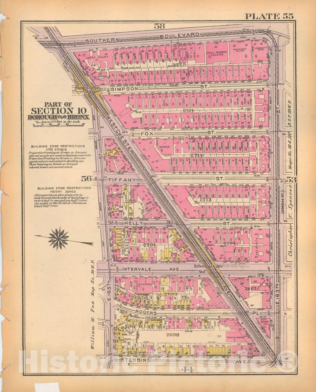 Historic Map : Borough of The Bronx, Sections 9-13, The Bronx 1928 Plate 055 , Vintage Wall Art