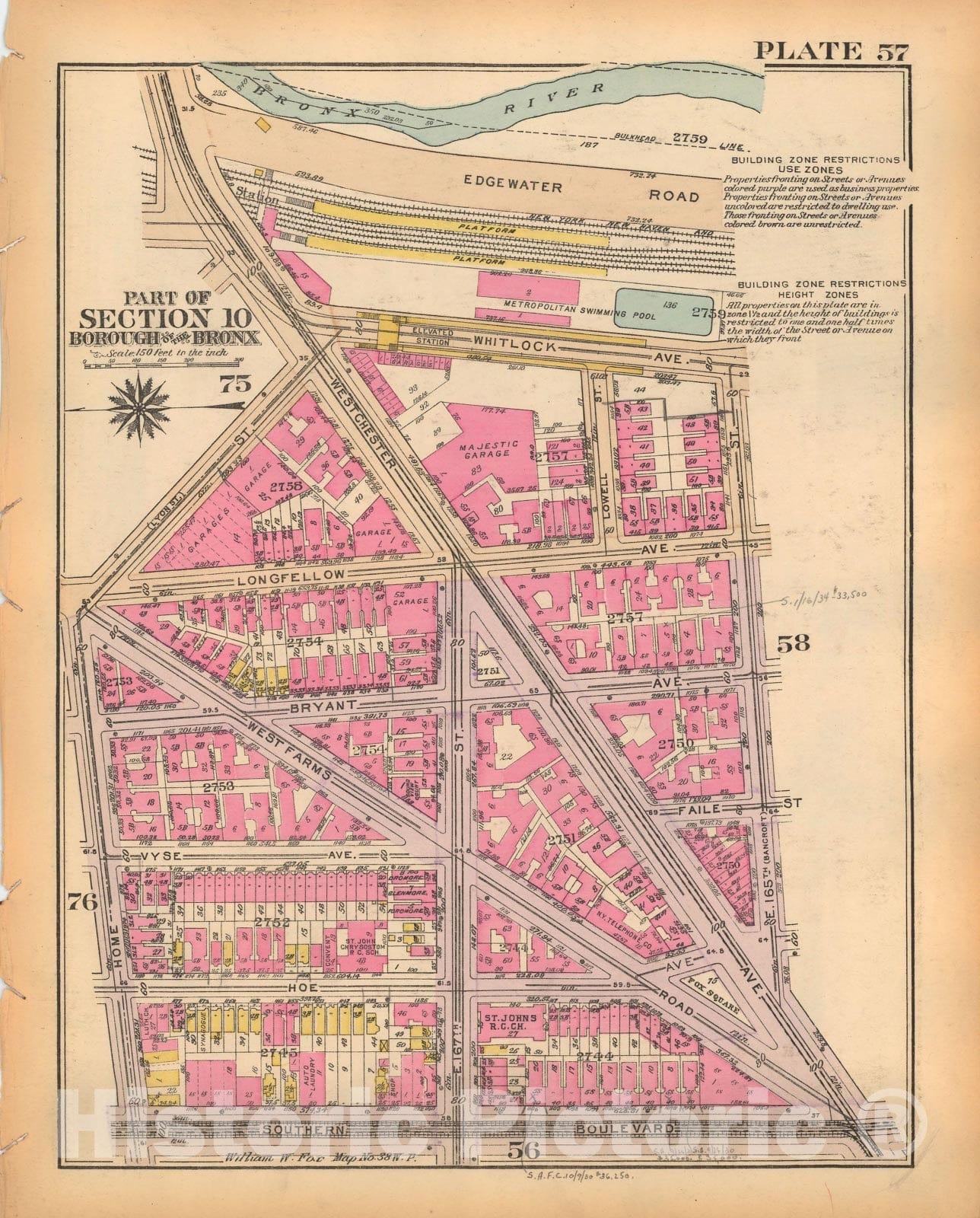 Historic Map : Borough of The Bronx, Sections 9-13, The Bronx 1928 Plate 057 , Vintage Wall Art