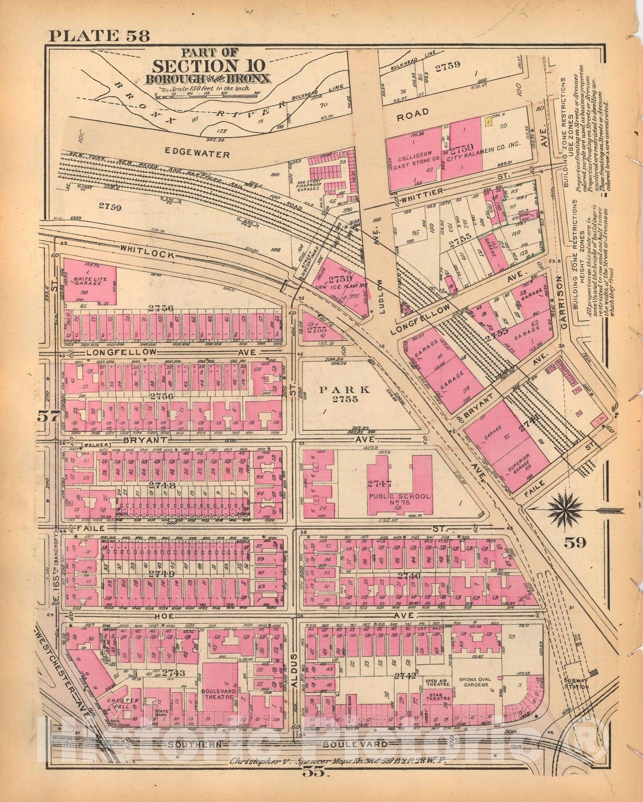 Historic Map : Borough of The Bronx, Sections 9-13, The Bronx 1928 Plate 058 , Vintage Wall Art