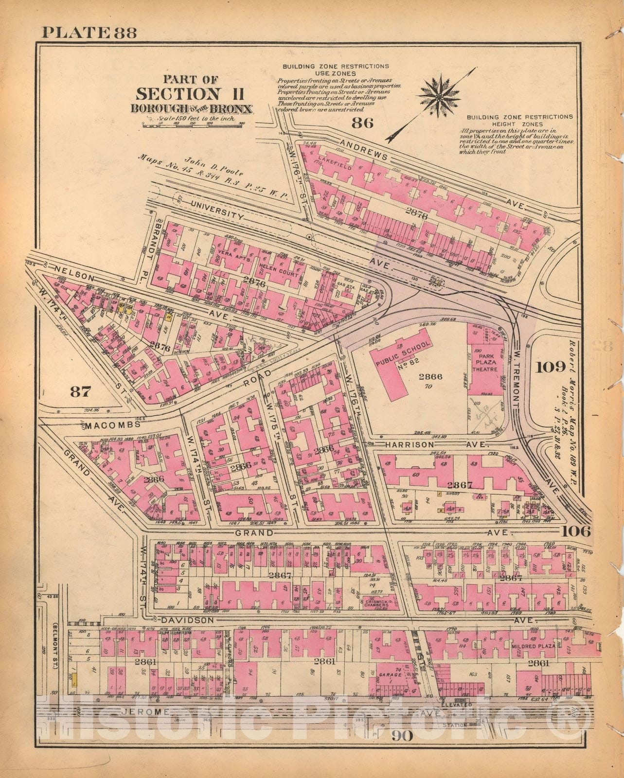 Historic Map : Borough of The Bronx, Sections 9-13, The Bronx 1928 Plate 088 , Vintage Wall Art