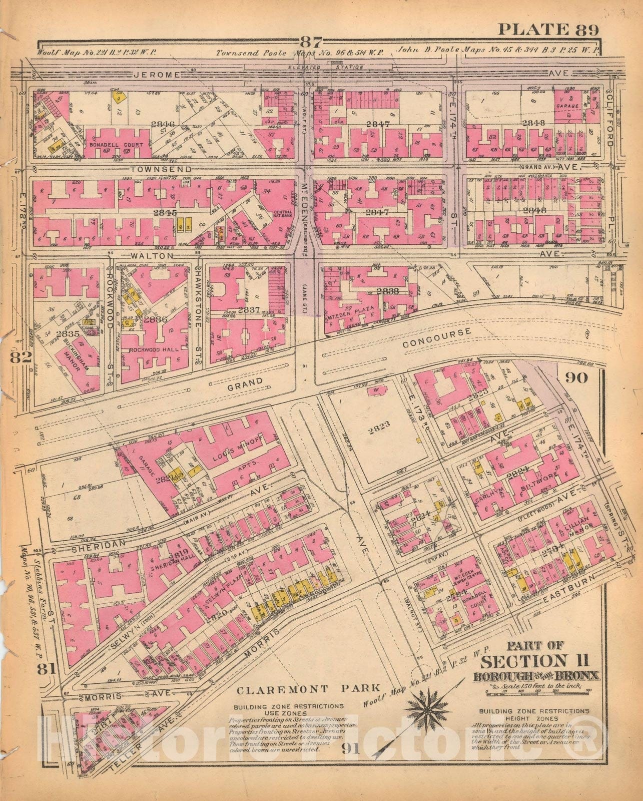 Historic Map : Borough of The Bronx, Sections 9-13, The Bronx 1928 Plate 089 , Vintage Wall Art