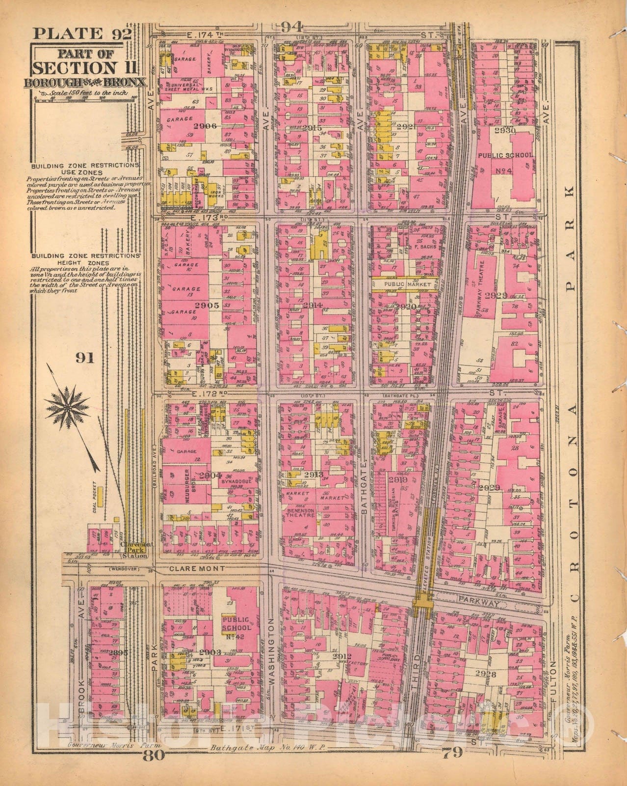 Historic Map : Borough of The Bronx, Sections 9-13, The Bronx 1928 Plate 092 , Vintage Wall Art