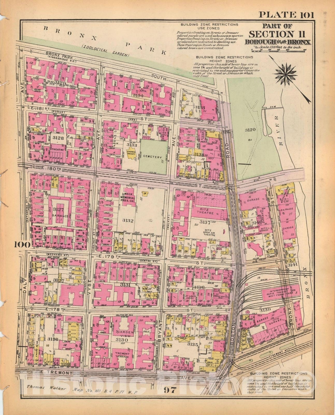 • .Historic Map : Borough of The Bronx, Sections 9-13, The Bronx 1928 Plate 101 , Vintage Wall Art