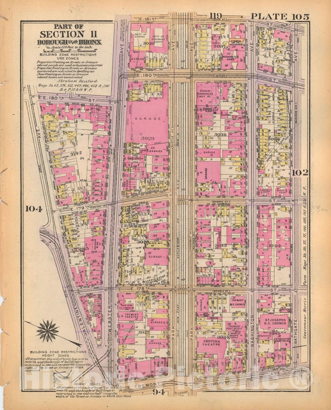 Historic Map : Borough of The Bronx, Sections 9-13, The Bronx 1928 Plate 105 , Vintage Wall Art