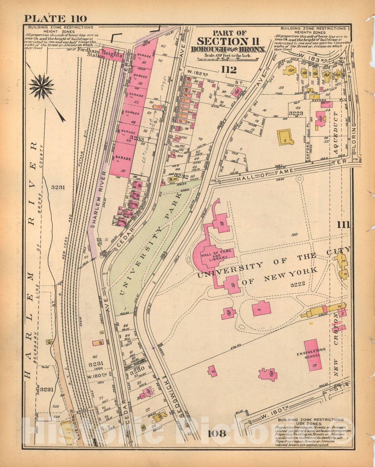 • .Historic Map : Borough of The Bronx, Sections 9-13, The Bronx 1928 Plate 110 , Vintage Wall Art