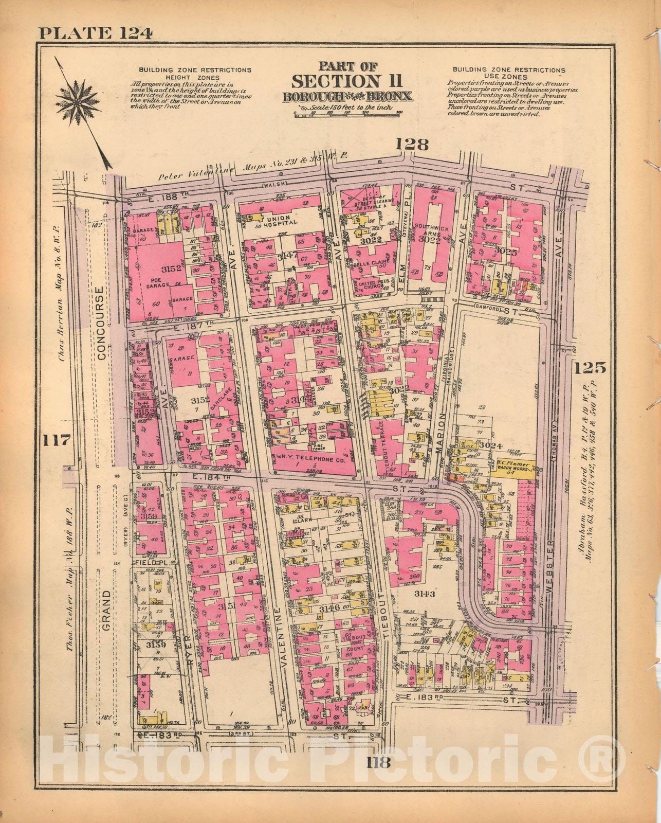 Historic Map : Borough of The Bronx, Sections 9-13, The Bronx 1928 Plate 124 , Vintage Wall Art
