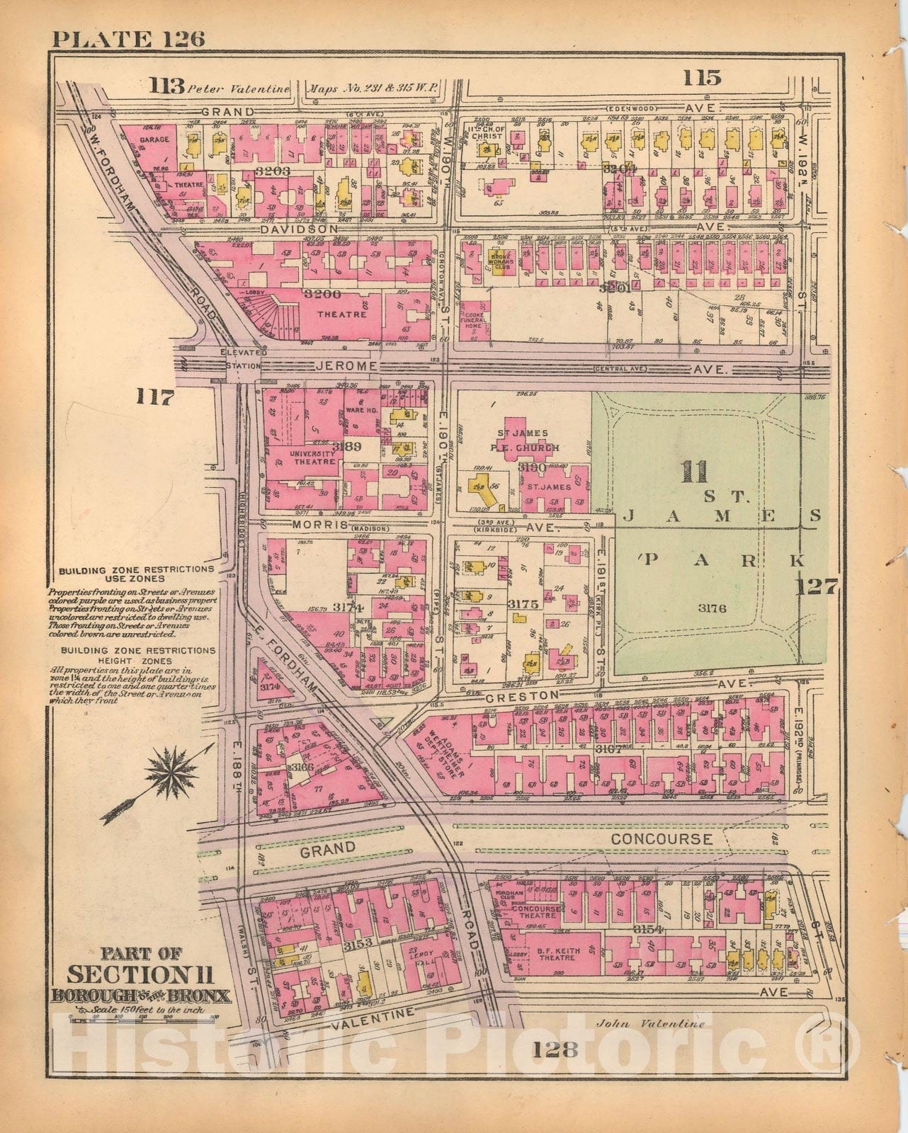 Historic Map : Borough of The Bronx, Sections 9-13, The Bronx 1928 Plate 126 , Vintage Wall Art