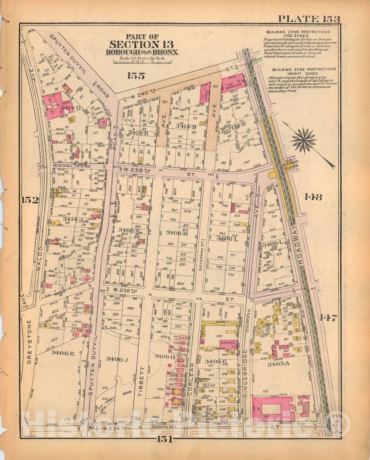 • .Historic Map : Borough of The Bronx, Sections 9-13, The Bronx 1928 Plate 153 , Vintage Wall Art